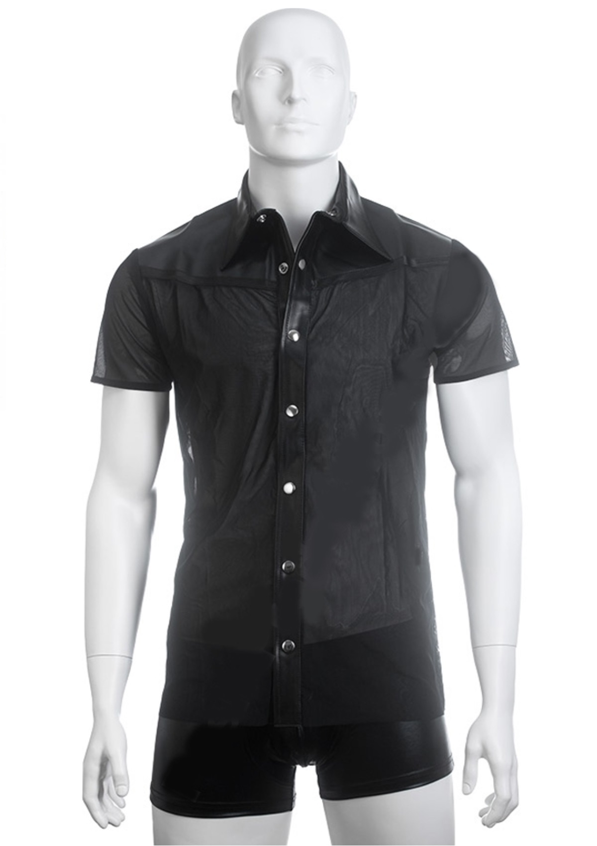 Fekete átlátszó ing bőrrel.