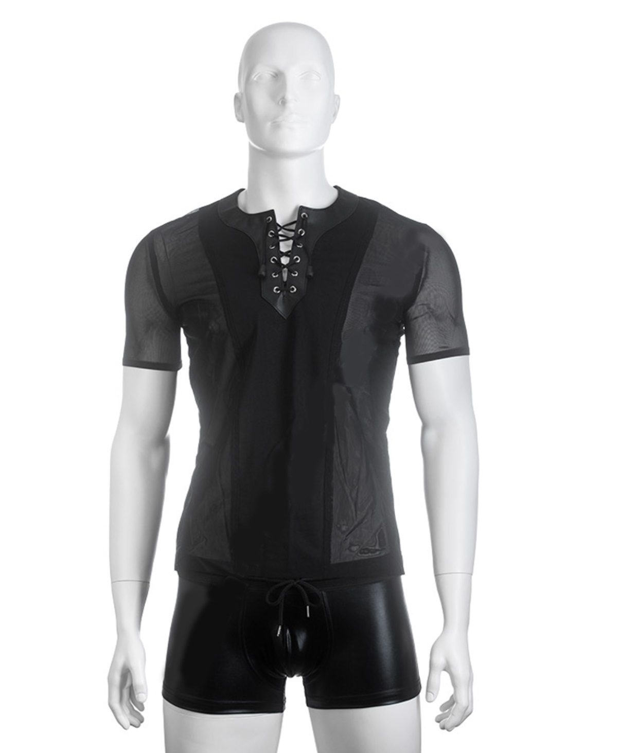 Bőrnyakpántos férfi tüll felső.