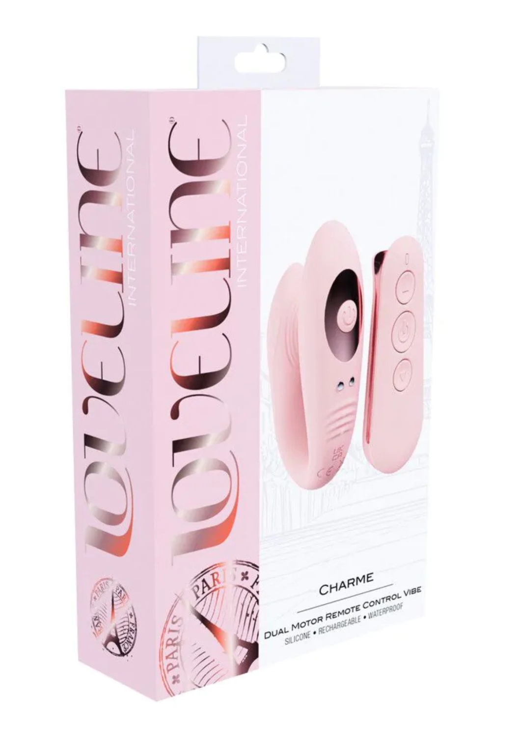 A Loveline International, Paris Collection Charme modellje egy kétmotoros G-pont és csikló stimulátor 10 funkcióval.
