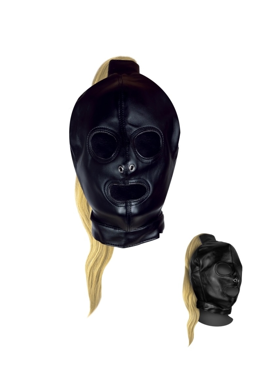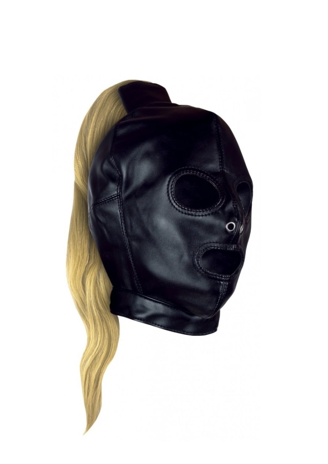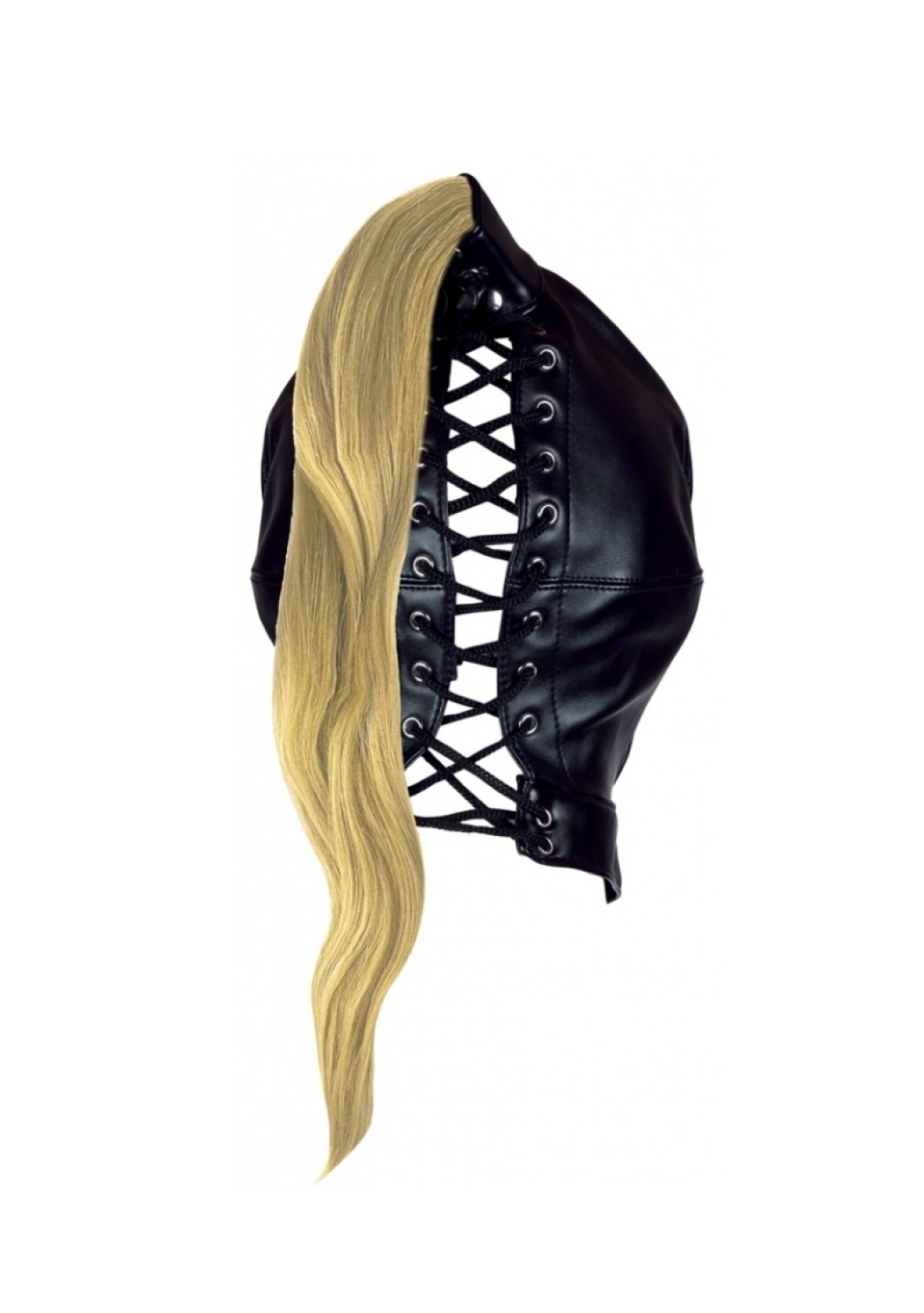 Hátul fűzős műbőr csuklya szőke hajjal(55cm).