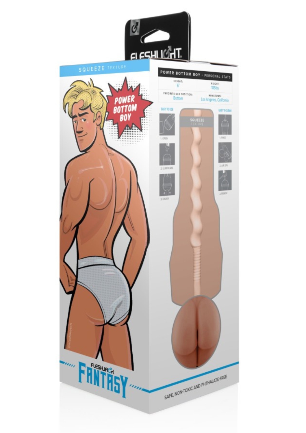 A Fleshjack Fantasy sorozat darabja, férfiaknak ajánlott, Power Bottom Boy ánuszáról formázott testnyílással ellátott egyéni erotikus játék. Minden FleshJack Fantasy maszturbátor egyedi belső textúrával rendelkezik. Használatával az aktus közbeni önkontroll nagy mértékben fejleszthető, így annak ideje jelentősen növelhető.