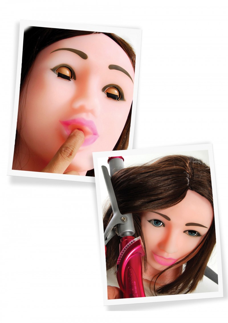Életnagyságú női fej cyber(teljesen élethű)anyagból.