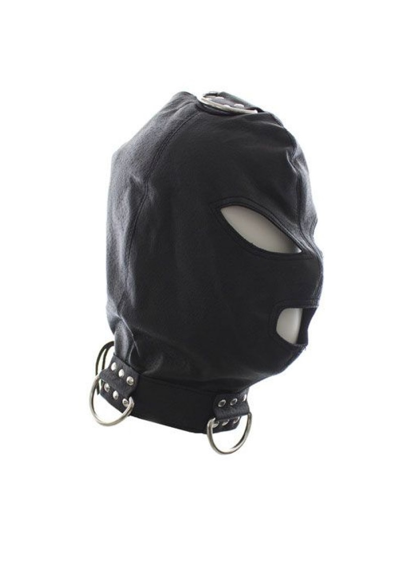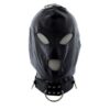 Műbőrből készült hátulján állítható méretű fűzős maszk.