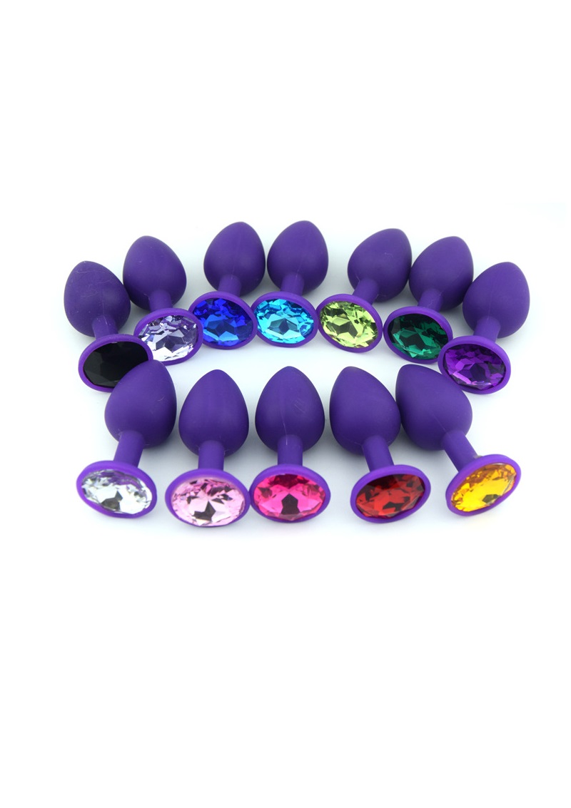 Lila szilikon anál plug csillogó véggel-közepes méret.