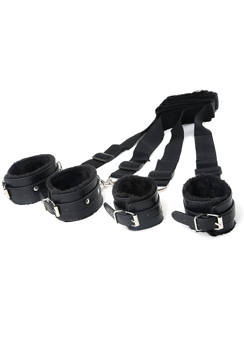 4 részes ágyhoz kötöző készlet: 2 csukló- és 2 bokapánt (mindkettő puha szőrös, sérülést nem okoz).