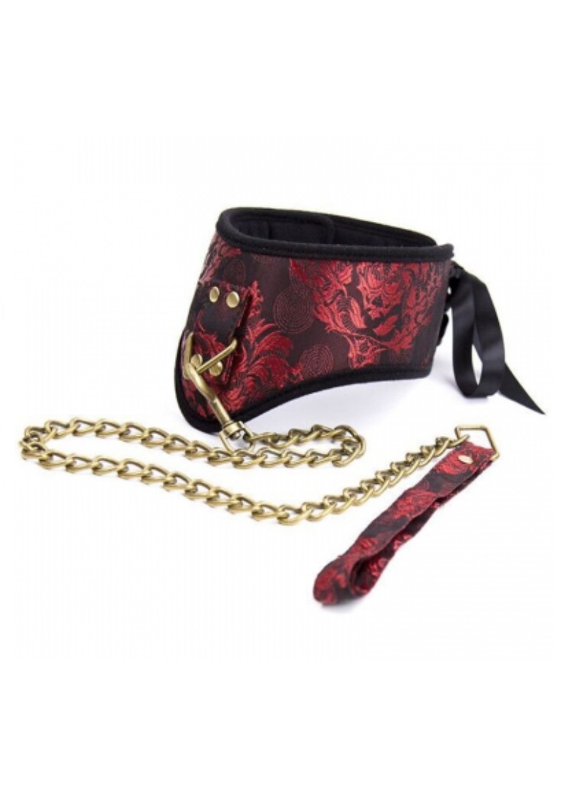 Mintás,fűzős széles nyakörv pórázzal.