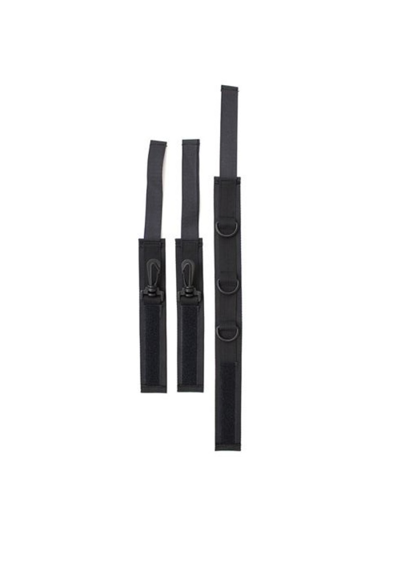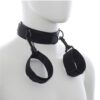 Nyakörv és csuklóbilincs, karabinerrel köthető össze.