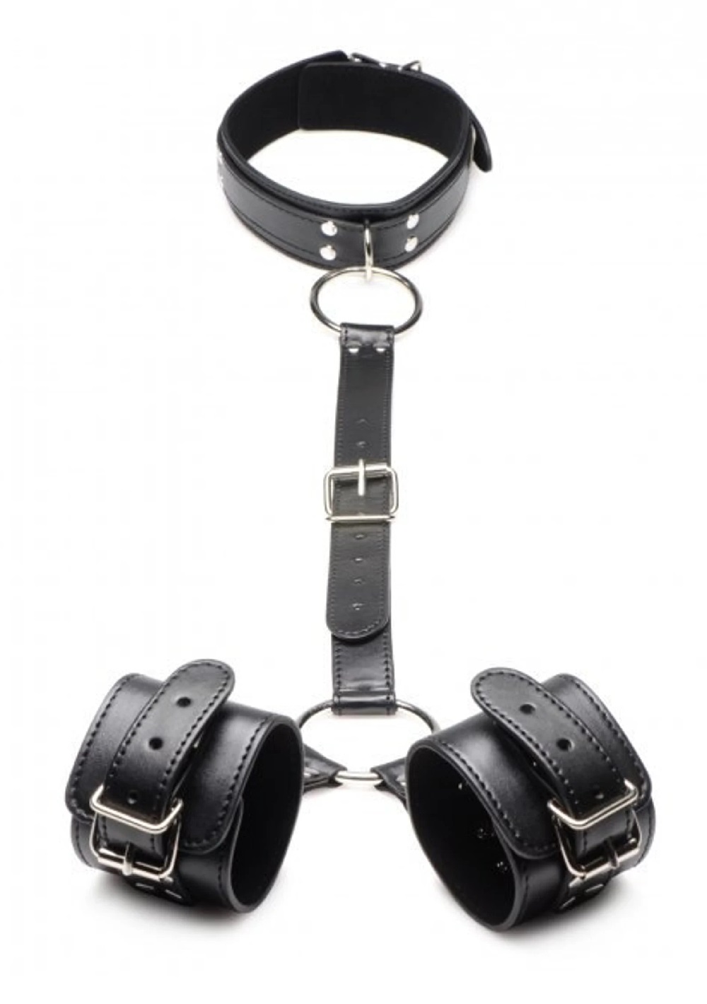 A nyakpánt állítható ahogy a kézbilincsek is.