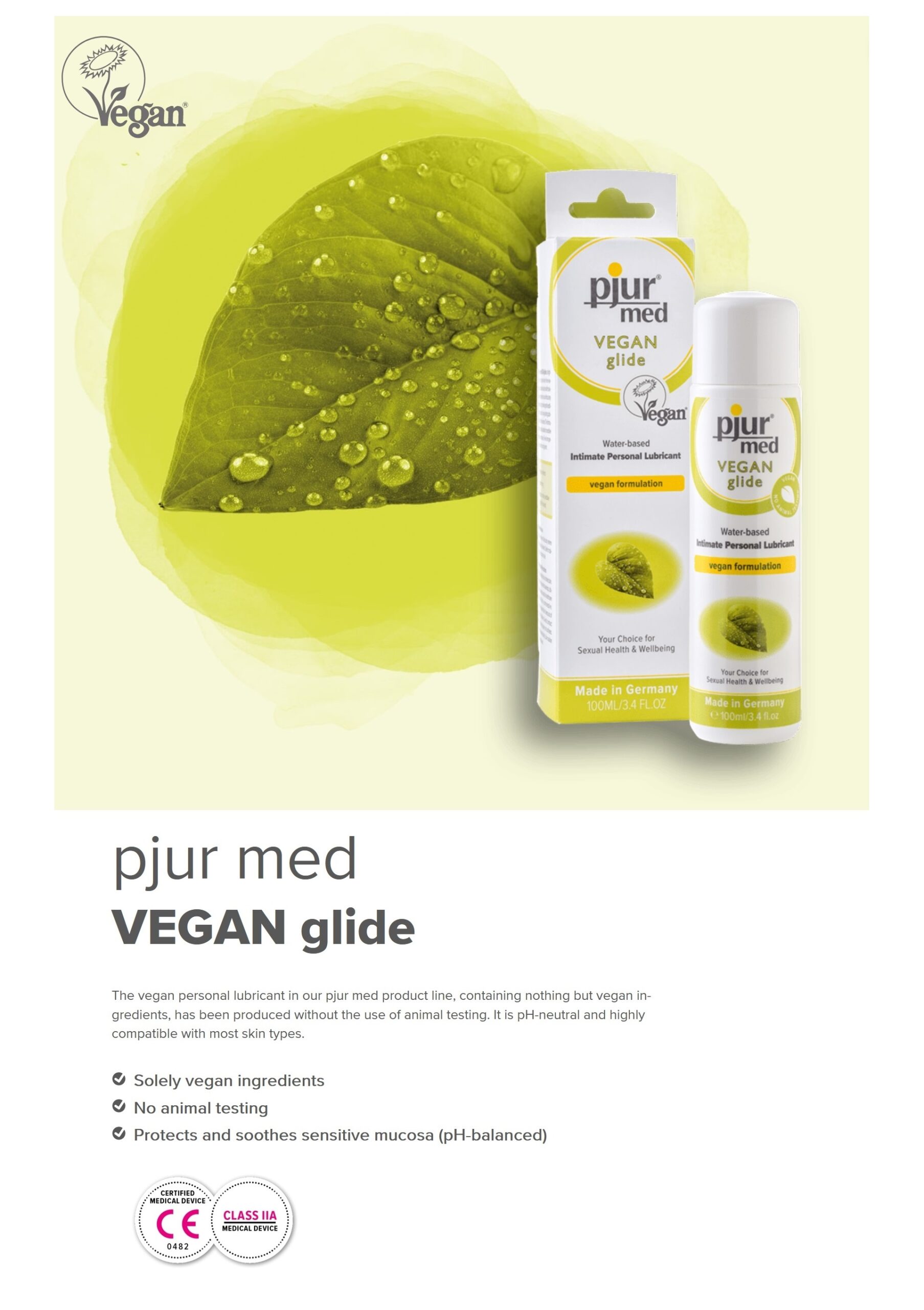 Magas minőségű, német gyártmányú, vízbázisú síkosító gél 100% vegán összetevőkkel, így minden bőrtípushoz tökéletesen passzol és az érzékeny bőrűek is biztonsággal használhatják.
