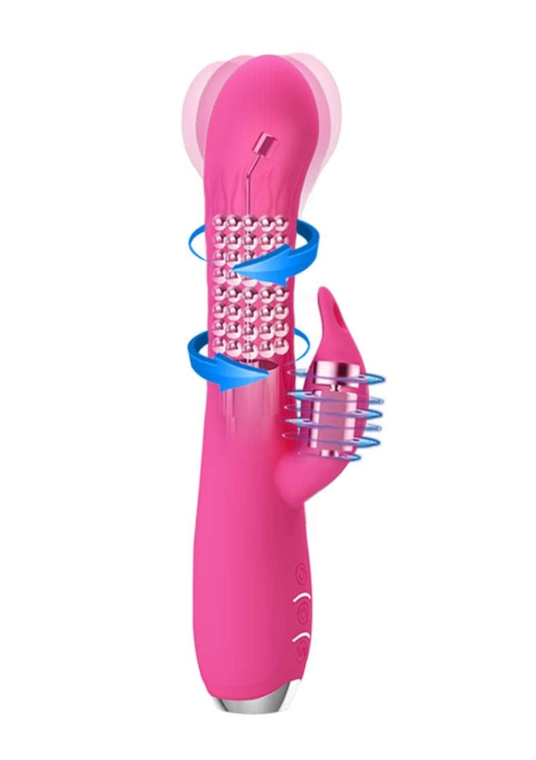 Kiváló minőségű szilikonból készített, 12 vibrációs és 3 forgási funkcióval rendelkező, tengelyében 8 stimuláló gyöngyöt tartalmazó, kétmotoros, memória funkciós, a g-pont izgatására is használható vibrátor.