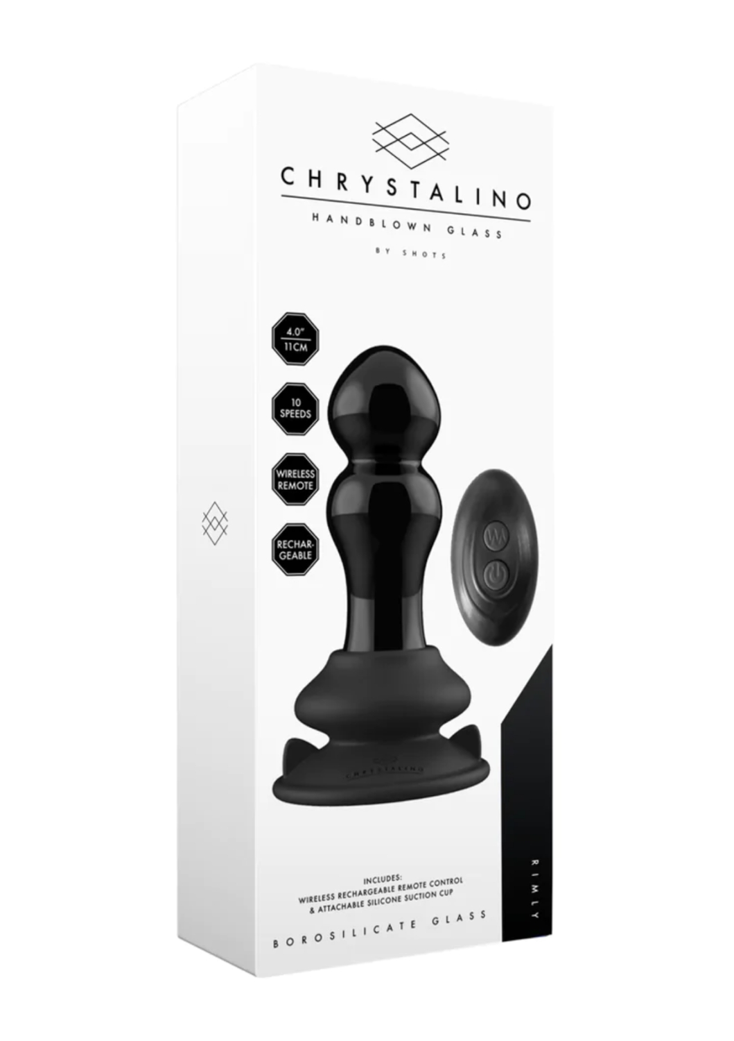 Rimly – Vibrating Glass Butt Plug with Suction Cup,akkus