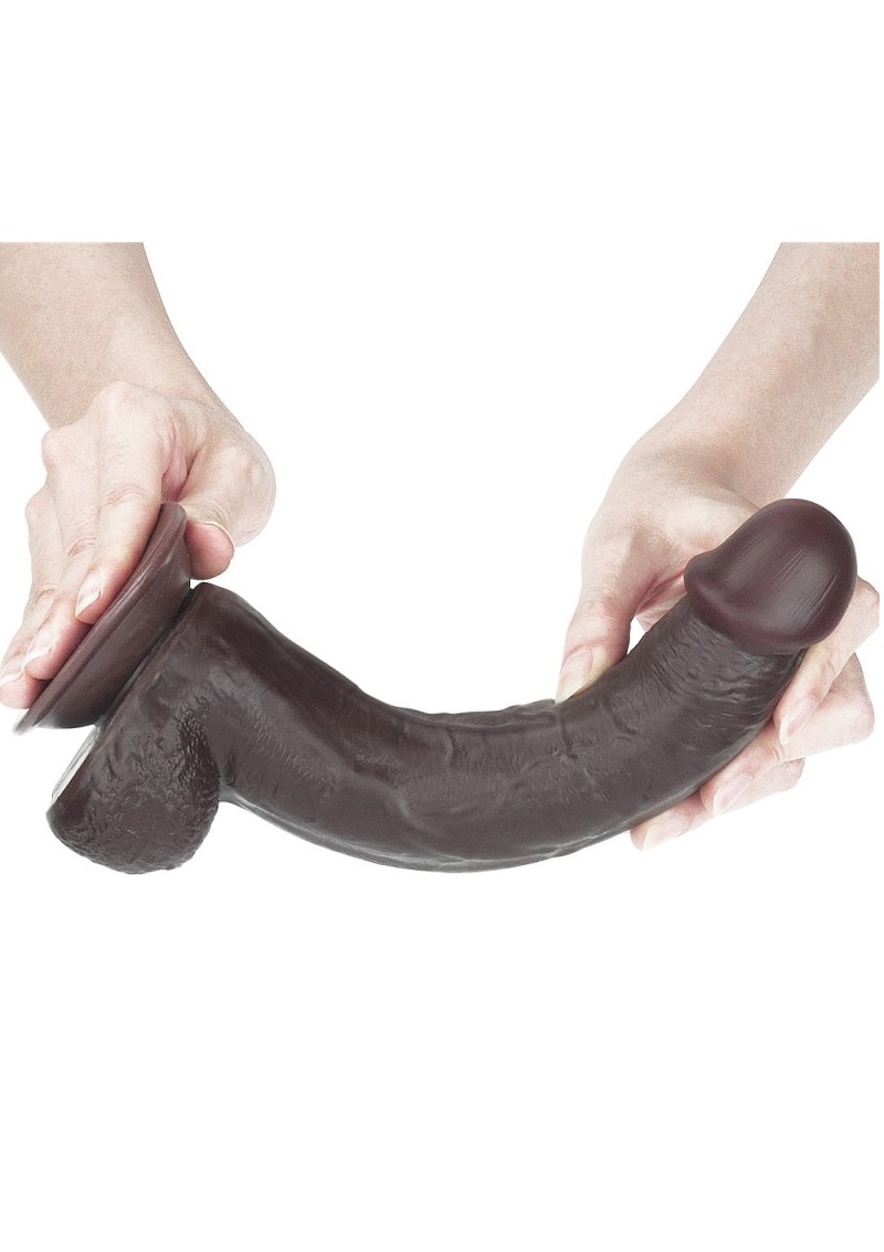 Péniszformájú, barna színű dildó, tapadótalppal, hangsúlyos makkal.