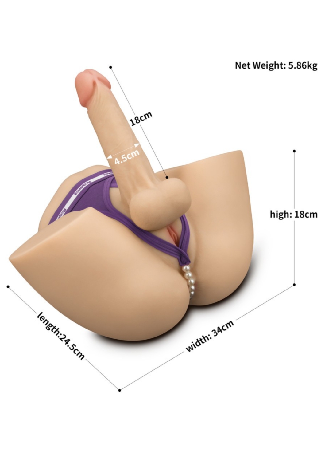 Kiváló minőségű, puha, bőrszerű anyagból készített, péniszt, ánuszt és vaginát formázó testnyílással kialakított erotikus játék, valósághű testméretekkel. A pénisz hossza 18 cm, átmérője 4,5 cm, és belső fémváza segítségével bármilyen pozícióba hajlítható. Az ánusz és a vagina belső hossza 13 cm, átmérője 1 cm. Használatával az aktus közbeni önkontroll nagymértékben fejleszthető, így annak ideje jelentősen növelhető.
