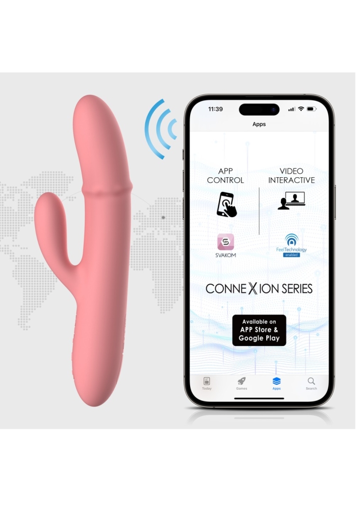 Prémium minőségű, bőrbarát anyagból készített, ergonómiailag kialakított, 5 rezgési és 5 sebességi fokozattal, szárában 3 toló funkcióval ellátott, csiklóizgatóval kiegészített, memória funkciós vibrátor. A két funkció egymástól függetlenül is irányítható.  Bluetooth kompatibilis okostelefon segítségével letölthető SVAKOM alkalmazás segítségével egyedi rezgési funkciókat lehet alkotni, akár zenei ritmusból, saját vagy párunk hangjából vagy környezeti zajokból is, amelyeket meg is lehet osztani másokkal. Biztonságos video chat kapcsolatot is kezdeményezhet, így akár partnere is irányíthatja az eszközt, miközben láthatják is egymást.