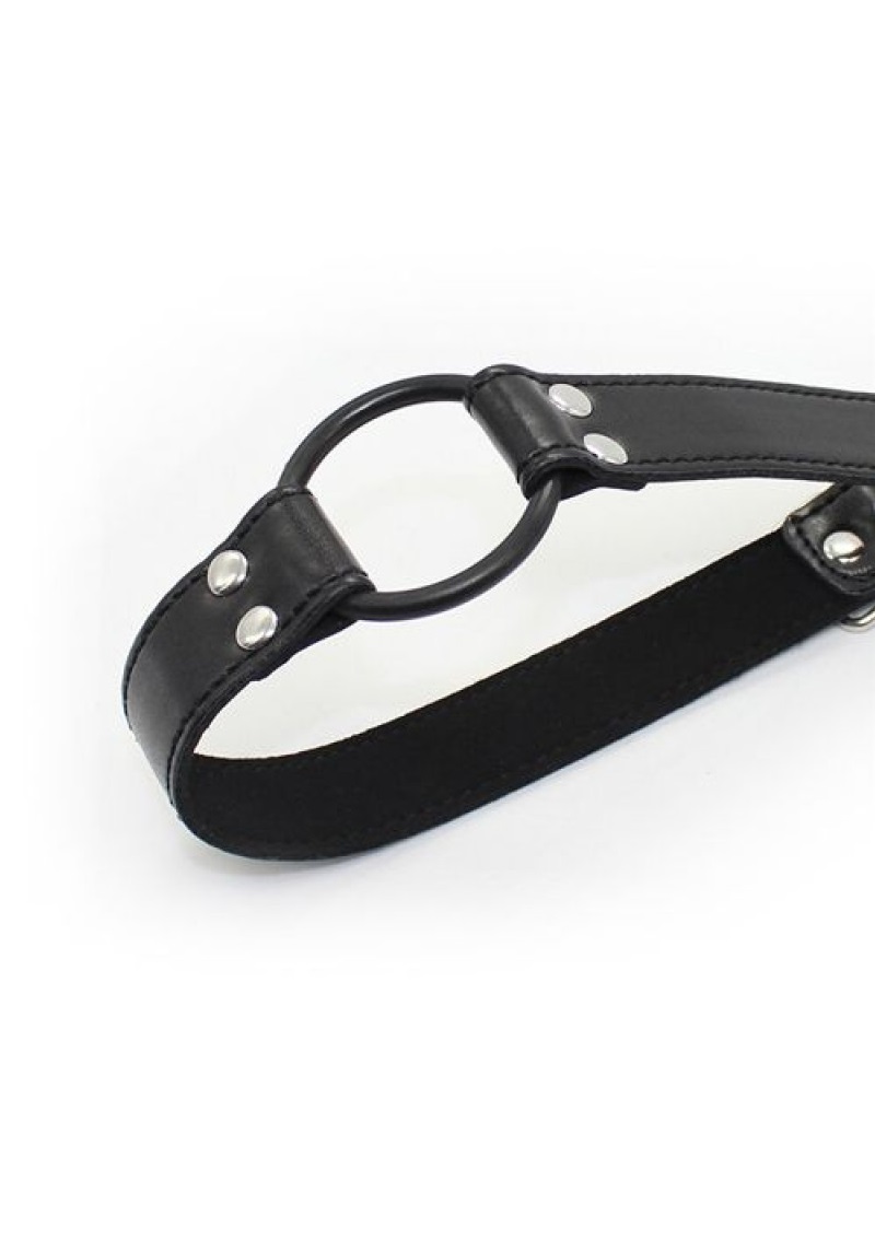 Szájpecek állítható szíjjal és fém karikával.