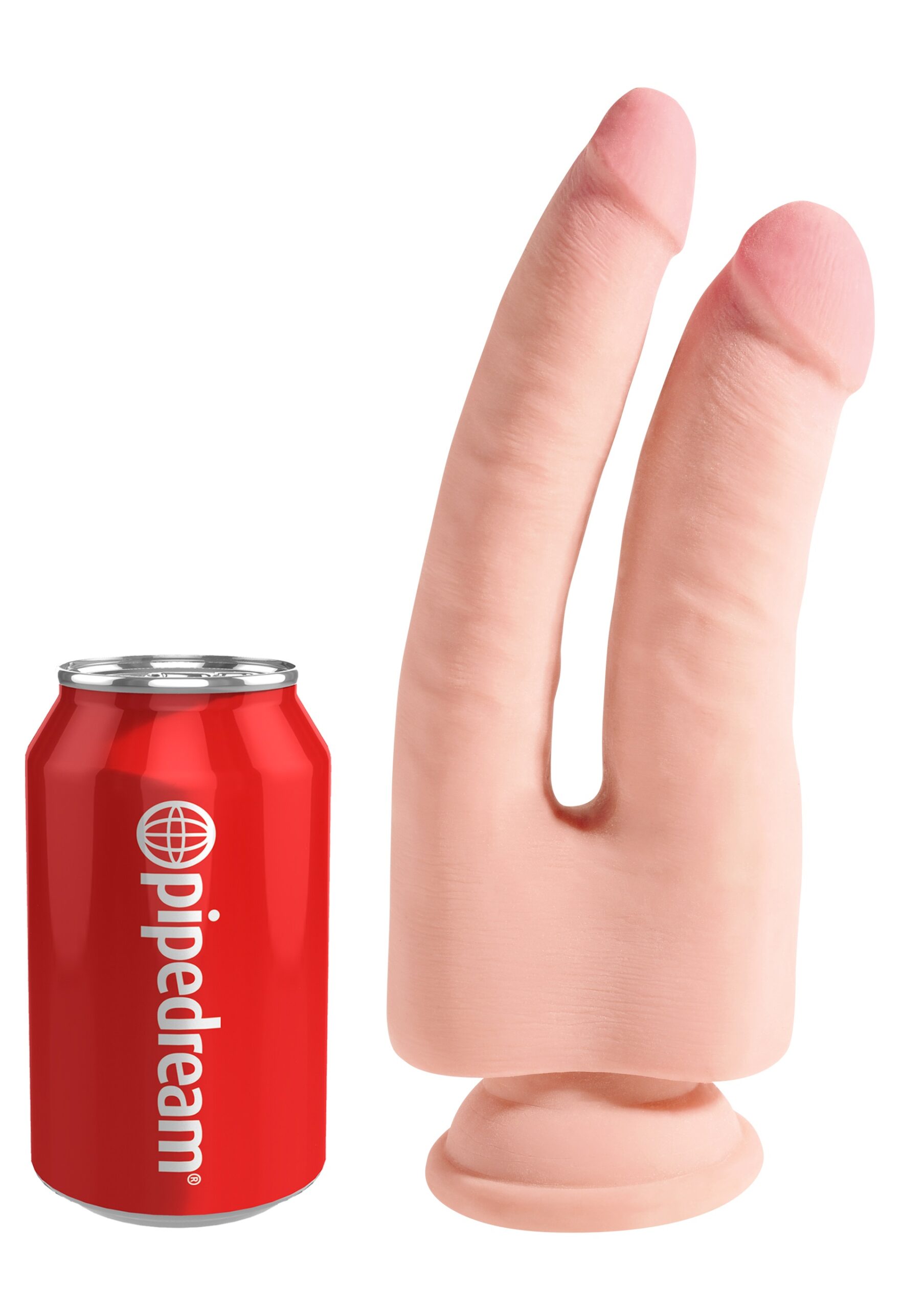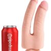 Péniszformájú, test színű kétágú dildó, tapadótalppal, hangsúlyos makkal.
