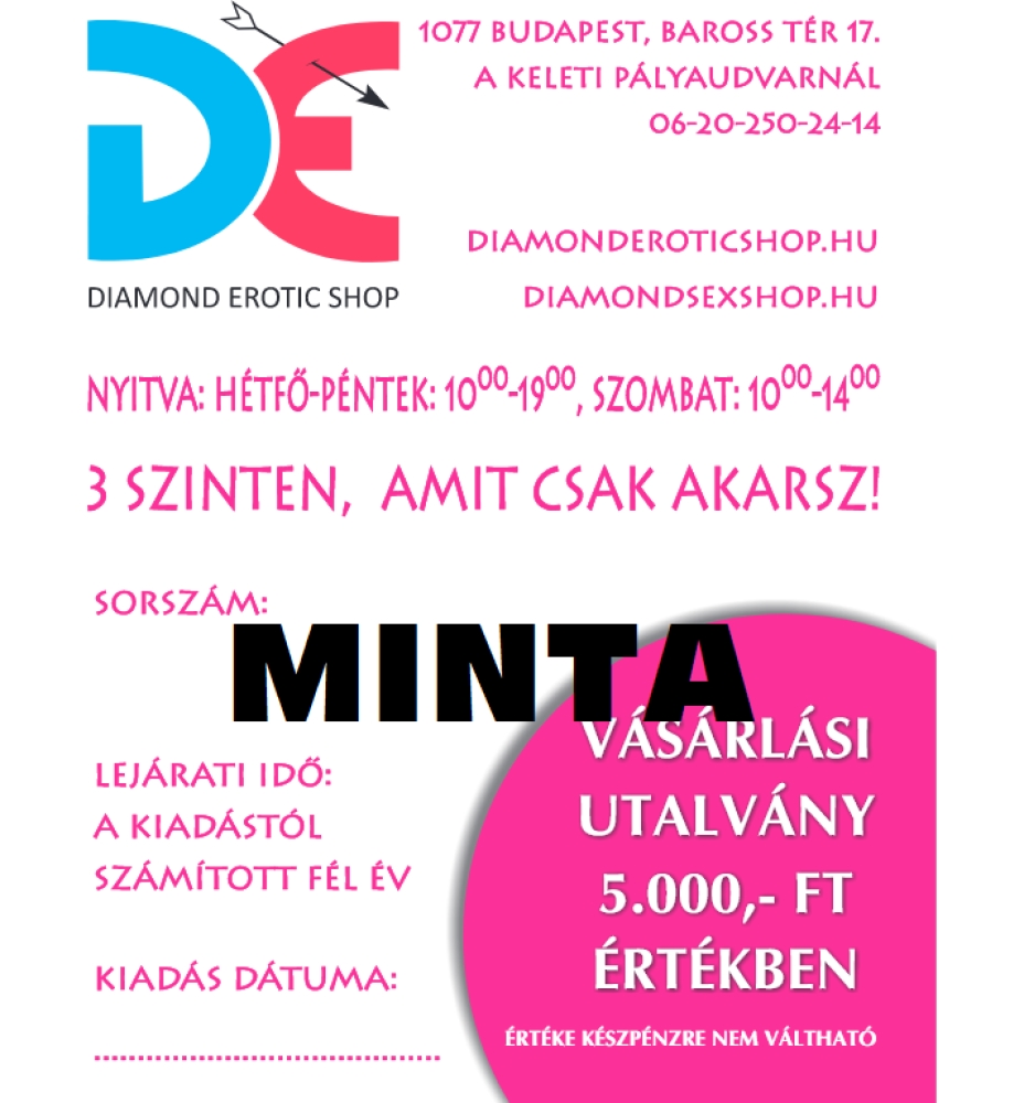 Vásárlási utalvány amely levásárolható a Diamond Sex Shop-ban