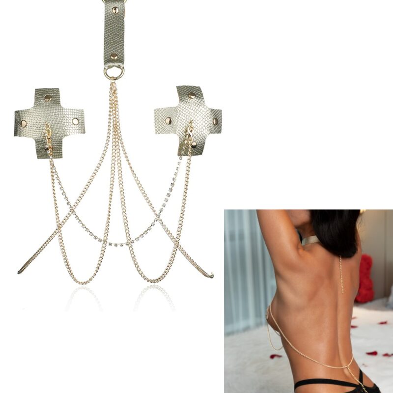 Rio nyakpánt lánccal és mellbimbótakaróval.