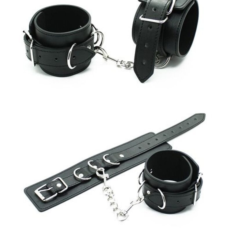 Fekete műbőr bilincs.