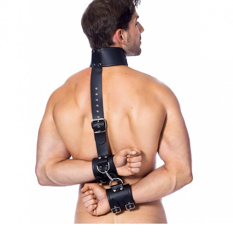 Bőr nyak-kéz bilincs.
